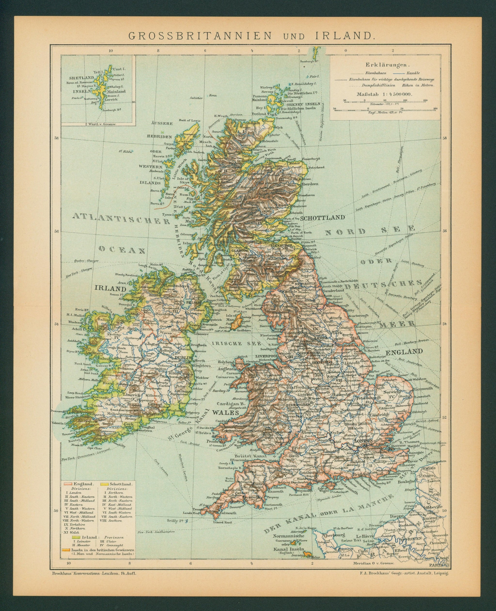 Great Britain, Ireland, Shetland Islands Antique Map Authentic